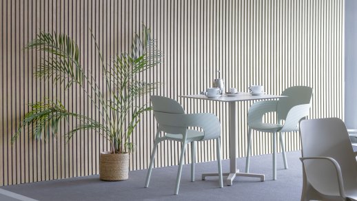 28.11.2022 KELO - akustinen rimaseinä yksinoikeudella Modeolta Tuo sisustukseen lämpöä puunsävyillä ja paranna samalla tilan akustiikkaa.