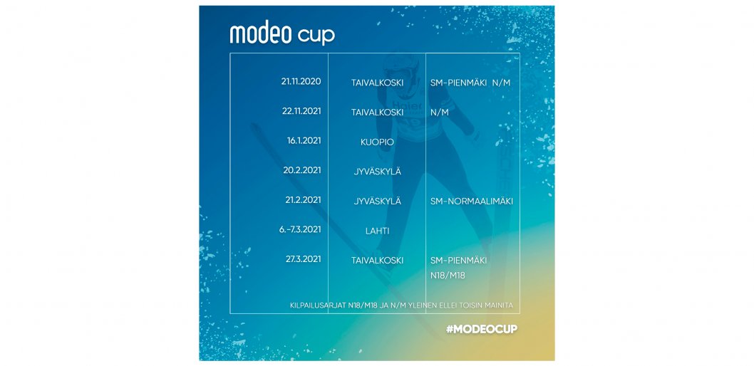Kaveria ei jätetä, 100%:sti suomalainen toimistokalustaja Modeo jatkaa Suomen mäkihyppymaajoukkueen pääsponsorina. Mäkihyppymaajoukkueen ja Modeon yhteistyökumppanuus jatkuu ja laajenee kotimaan kilpailutoimintaan kaudella 2020-2021. Modeon nimeä kantava cup sisältää kahdeksan osakilpailua.